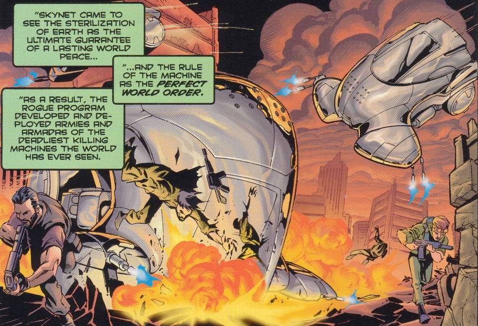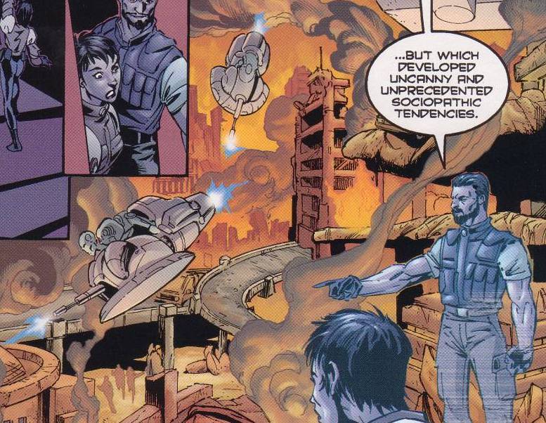 On page 8, the alien-android hybrid smashes a liquid-filled